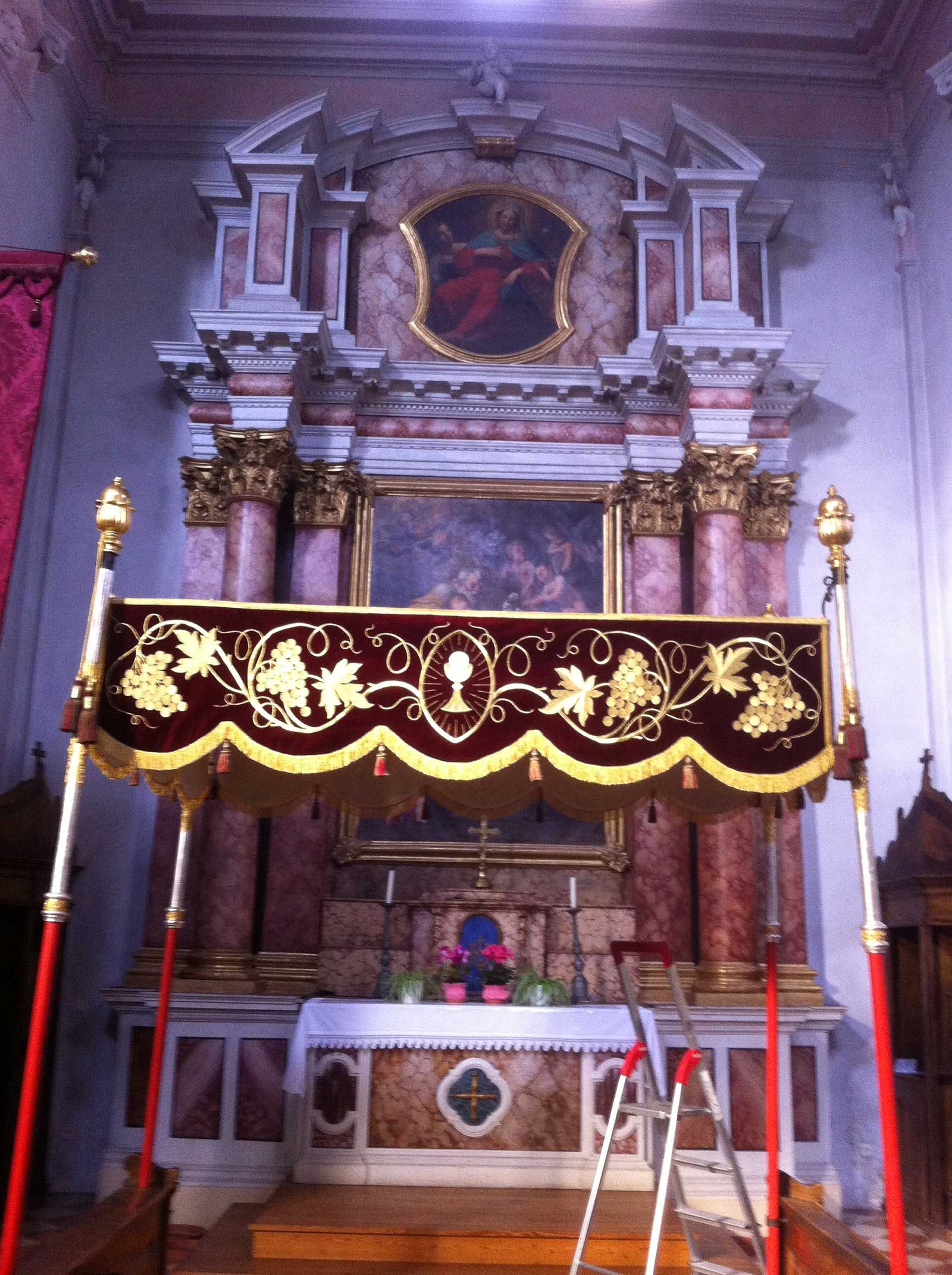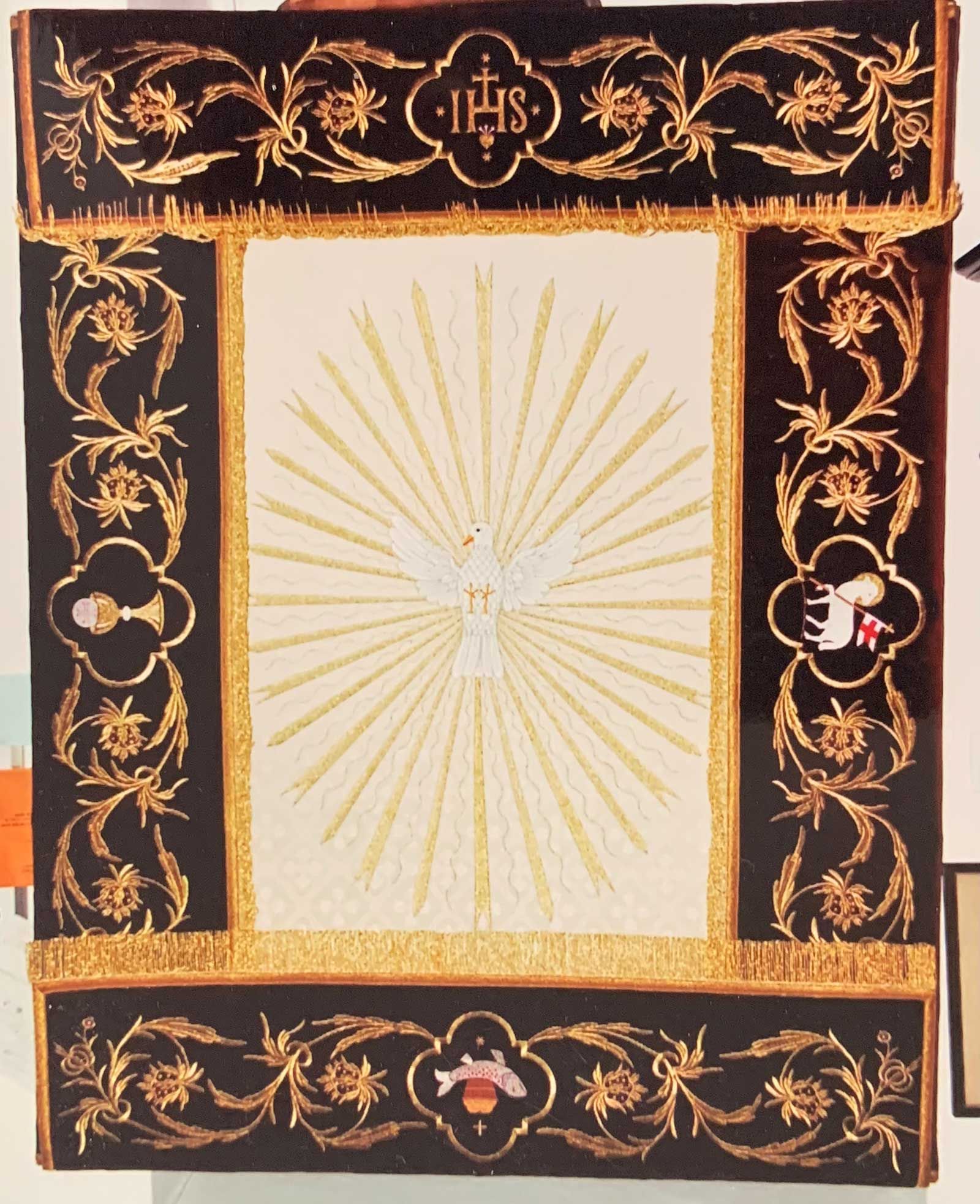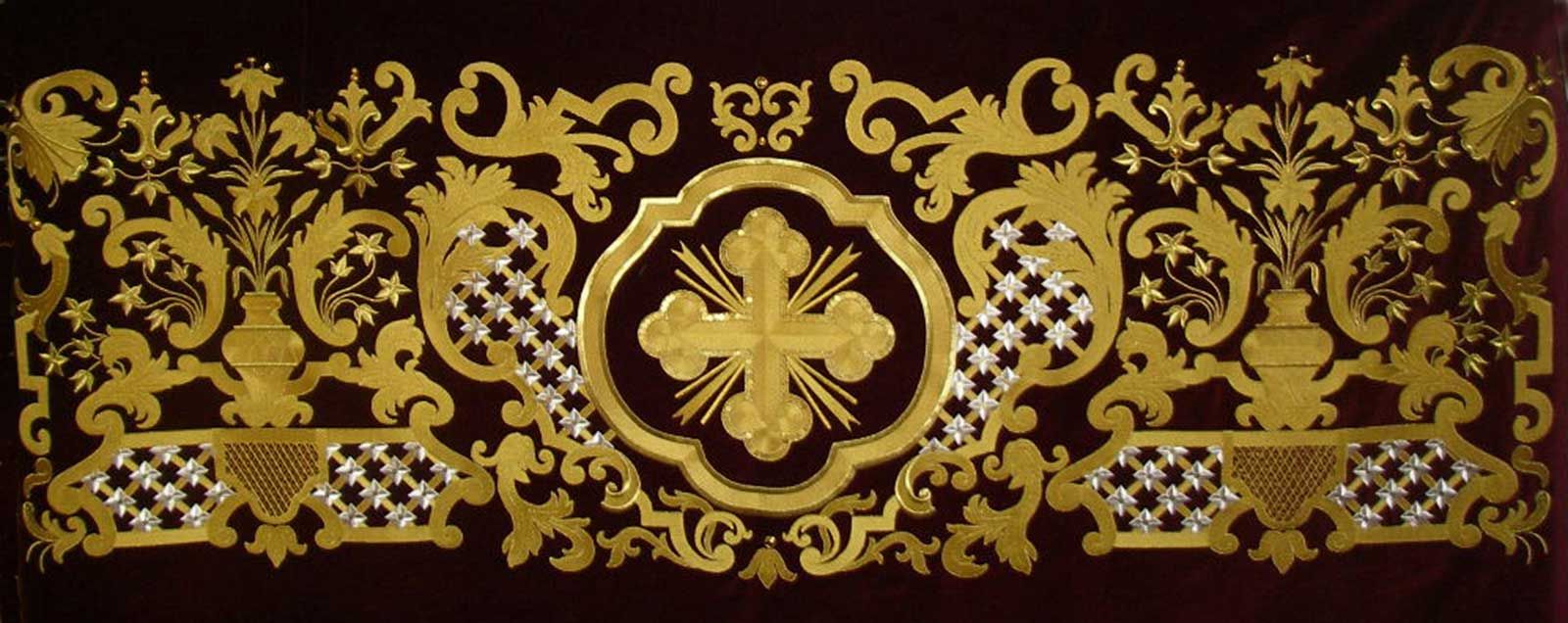 Unsere Werkstätte ist Dank des fachmännischen Personals darauf spezialisiert, jegliche Paramente und Kirchenfahnen nach Wunsch in höchster Qualität oder eventuell auch nach eigenen Entwürfen herzustellen. Außerdem reparieren und erneuern wir kunstgerecht alte Paramente.